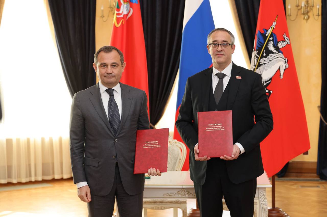 🇷🇺🇷🇺 Подписали соглашение о сотрудничестве между Московской городской Думой и Московской областной Думой.