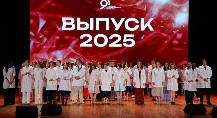 — Дорогие выпускники! Сегодня вы произнесли клятву врача, и я верю, что каждый из вас осознал всю глубину и ответственность этих слов. Вы стояли на сцене в белых халатах – символах чистоты, милосердия и верности профессии. Желаю,чтобы они всегда оставались такими же безупречными и чистыми, а вы с честью пронесли звание врача через всю жизнь! Помните, что ваша профессия требует не только знаний и мастерства, но прежде всего – человечности и сострадания. Гордитесь своим выбором, верьте в себя и помните: врач – это не просто профессия, это образ жизни и призвание! Тула гордится вами! — подчеркнул Алексей Алоисович.