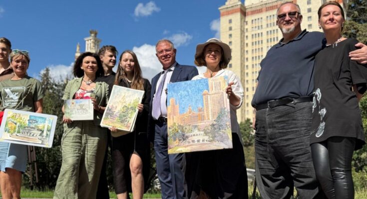 🖼 Заместитель Председателя Мосгордумы Степан Орлов (фракция партии «Единая Россия») встретился со столичными художниками, ставшими участниками пленэра перед главным зданием МГУ.