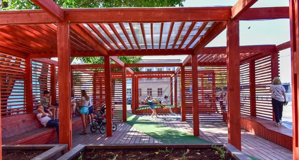 Сквер-пергола из жесткого каркаса и деревянных колонн – на его создание ушел всего 1 миллион рублей, а автор проекта отмечен дипломом международного жюри.