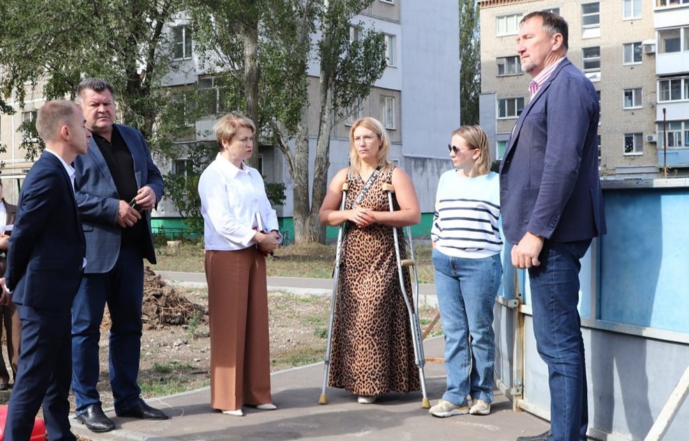 Заместитель председателя Саратовской городской Думы Елена Злобнова и председатели профильных комитетов Думы Вячеслав Тарасов и Игорь Фомин вместе с жителями Кировского района оценили, как идут работы по устройству детской спортивной площадки.