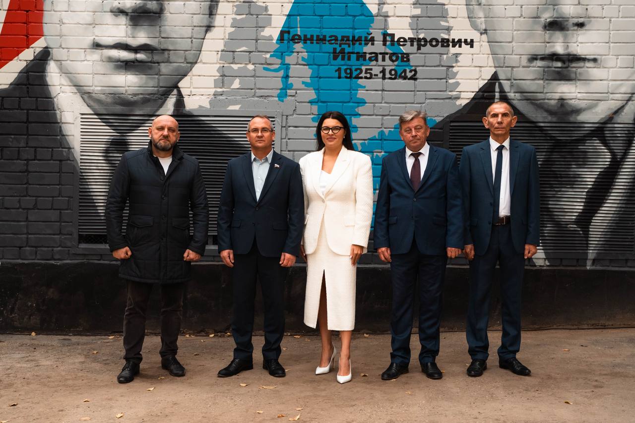 Волонтёры Победы в Советском районе торжественно открыли граффити, посвящённое братьям Евгению и Геннадию Игнатовым — Героям Советского Союза.