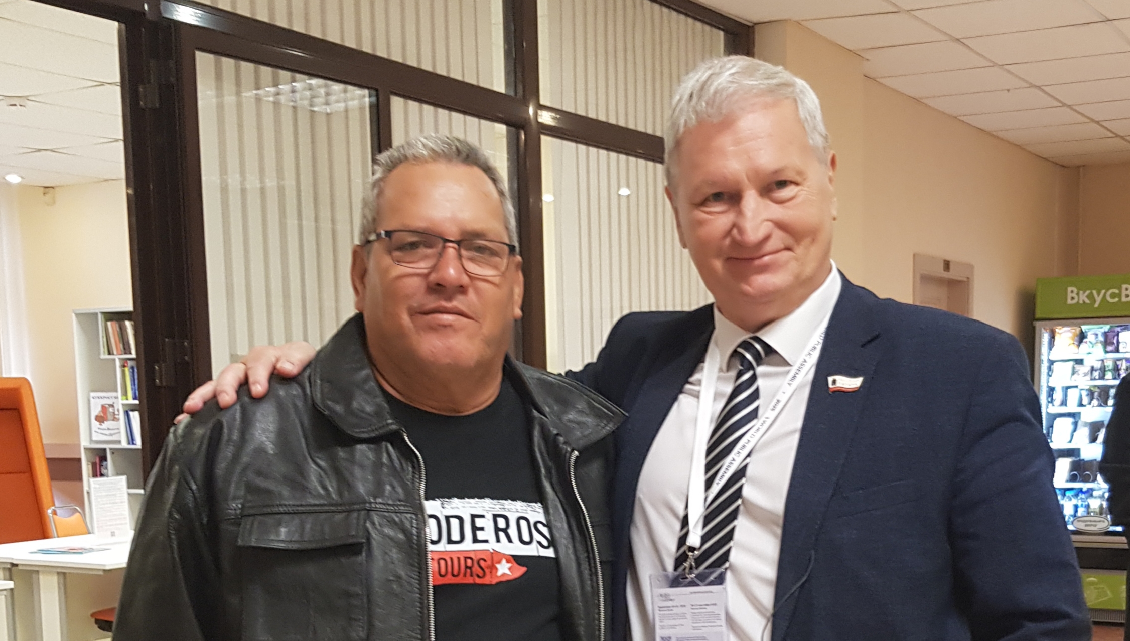 Учредитель Информационного агентства «Местное самоуправление» Игорь Мещеряков встретился с младшим сыном команданте Че Гевары Эрнесто Гевара Марч на Всемирной общественной ассамблее «Новый мир осознанного единства» в Москве.