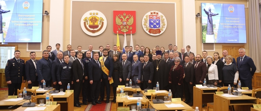 12 декабря 2025 года в Большом зале администрации города Чебоксары под председательством Владимира Доброхотова состоялось внеочередное 4-ое заседание Чебоксарского городского Собрания депутатов, в котором приняли участие Председатель Кабинета Министров Чувашской Республики Сергей Артамонов, и.о. председателя Государственного Совета Чувашской Республики Виктор Горбунов, и.о. Руководителя Администрации Главы Чувашской Республики Владимир Степанов, Почетные граждане города Чебоксары, а также представители органов государственной власти Чувашской Республики, прокуратуры, администрации города Чебоксары, духовенства, общественности и средств массовой информации.