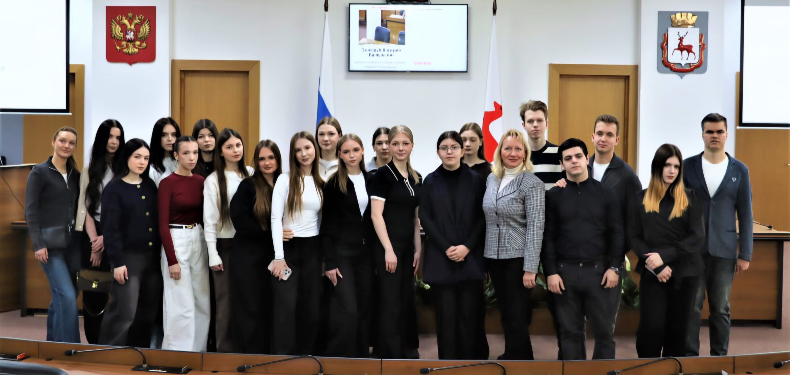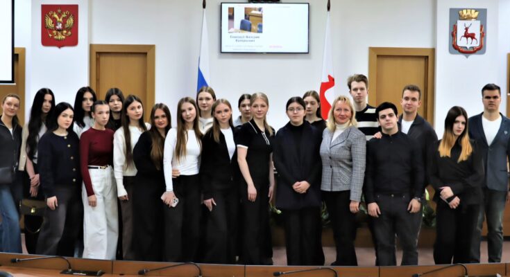 В городскую Думу города Нижнего Новгорода в рамках профориентационной работы и в целях знакомства молодежи с деятельностью органов власти и местного самоуправления пришли студенты второго курса отделения среднего профессионального образования Института экономики ННГУ им. Н.И. Лобачевского.