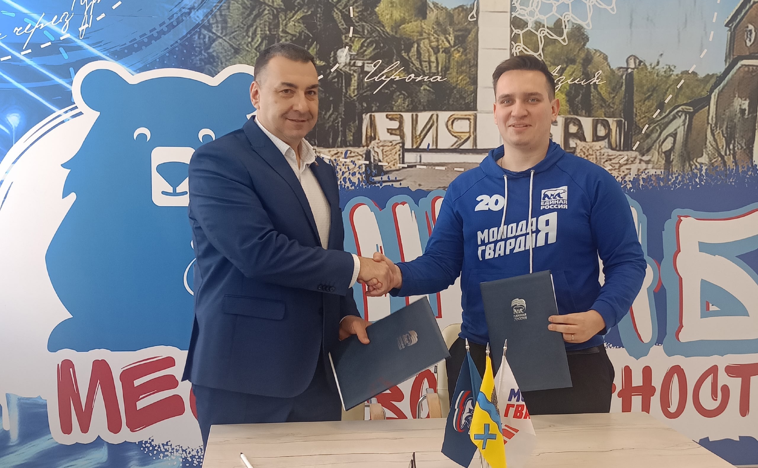Председатель горсовета Сергей Бабин и руководитель «Молодой гвардии» Владислав Крюков поставили свои подписи под документом. Это шаг к объединению опыта депутатов и свежих идей молодежи.