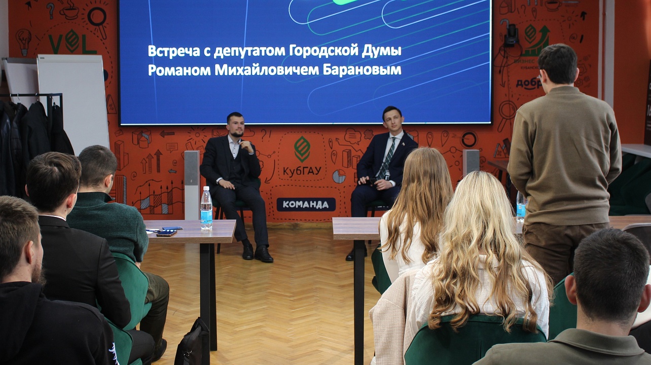 Председатель Совета молодых депутатов городской Думы Краснодара Роман Баранов принял участие во встрече со студентами Кубанского государственного аграрного университета в рамках Кубка Ректора по парламентским дебатам.