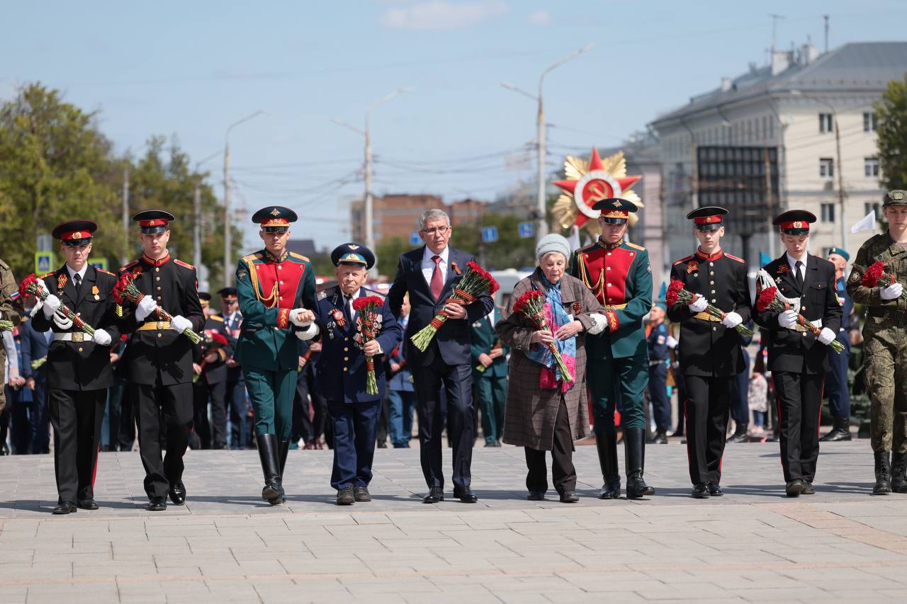 В рамках торжественных мероприятий, приуроченных к 80-й годовщине Победы в Великой Отечественной войне, прошло возложение цветов и гирлянд к Вечному огню мемориального комплекса «Героическим защитникам Тулы в 1941 году» на площади Победы и к мемориалу «Защитникам Родины» на территории городского кладбища.